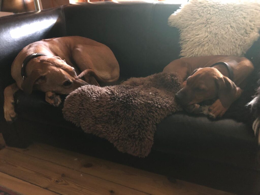Im übringen ist Poldi kein Einzelkind – an seiner Seite lebt Kieli, eine Ridgeback-Hündin. Hier musst erst mal das Eis schmelzen – kein Problem für Poldi – aber jetzt zeigt sie ihm, wie das Leben als „Nordlicht“ funktioniert.