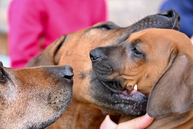Sogar Ayoki, die Oma, hat grosses Interesse an Wohlergehen der Welpen und hilft bei der Welpenaufzucht.