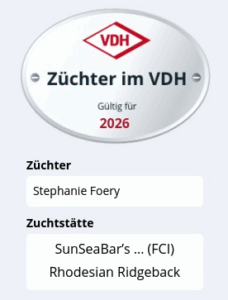 Sun Sea Bars Ridgeback Zucht